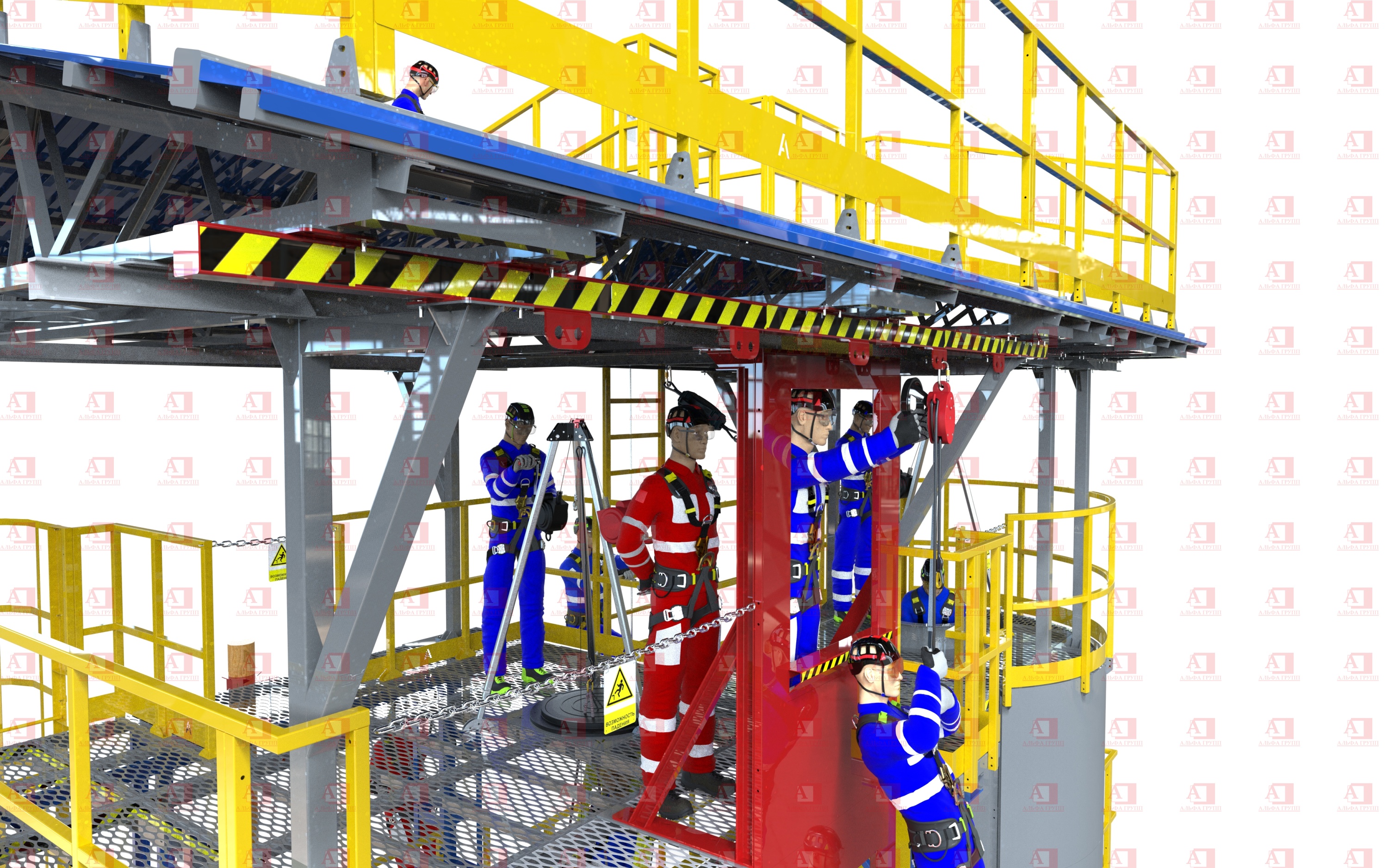 Для защиты от риска падения комплекс оснащен перилами и защитным ограждением высотой не менее 1100 мм.